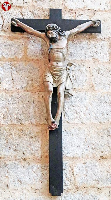 Sobre el muro de la Epístola se puede observar un Cristo Crucificado de pequeño tamaño del XVIII.