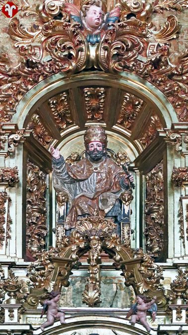 Gabriel Fernández doró la obra en 1775. A ambos lados, sobre la parte alta del muro se encuentran dos relieves con los escudos coronados de la rama castellana de los Ribadavia.